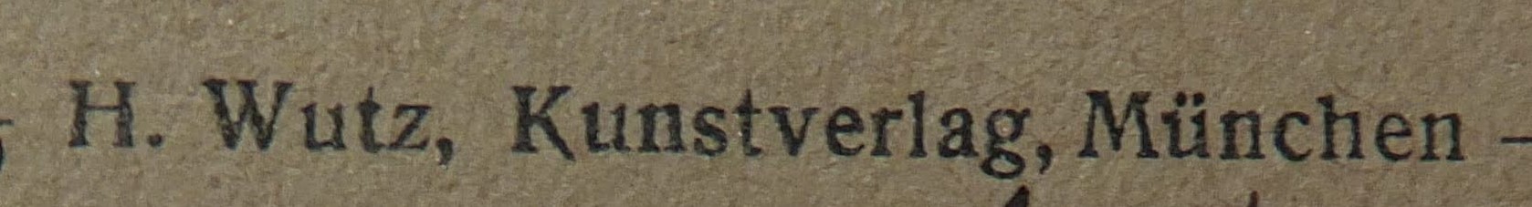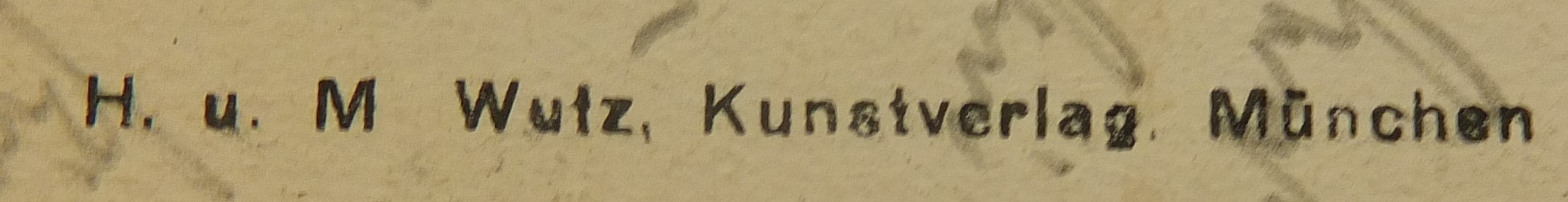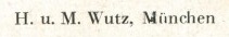 | Schreibweisen und Abkürzungen | H. Wutz, Kunstverlag ⎖ H. u. M. Wutz, Kunstverlag ⎖ H. W. M. ⎖ Schreibwarenhandlung Hans Wutz ⎖ Kunstverlag H. u. M. Wutz ⎖ Verlag: H. & M. Wutz |