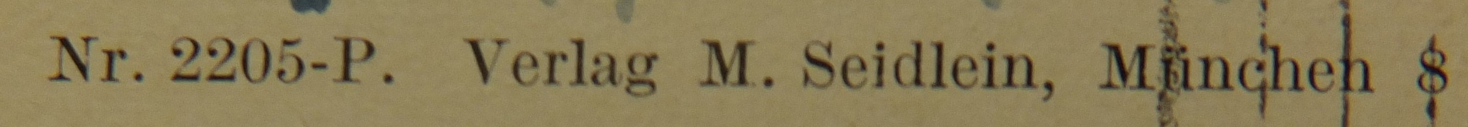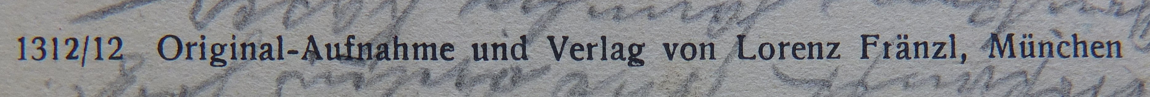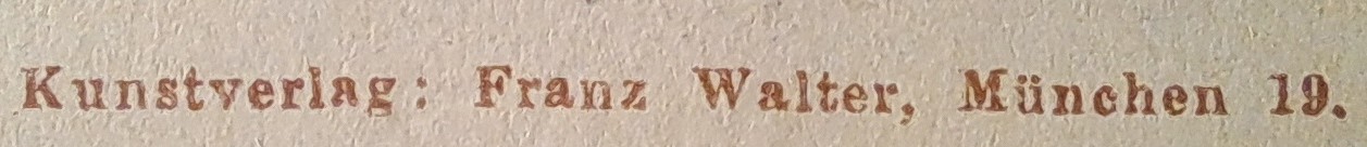 | Schreibweisen und Abkürzungen | Eigentum & Verlag: Würthle & Sohn ⎖ Kunstverlag W. Zimmermann ⎖ Kunstverlag W. Zimmermann, München, vorm. Würthle & Sohn ⎖ W. Zimmermann, München ⎖ Walther Zimmermann Nachf. Ernst Paulat. |