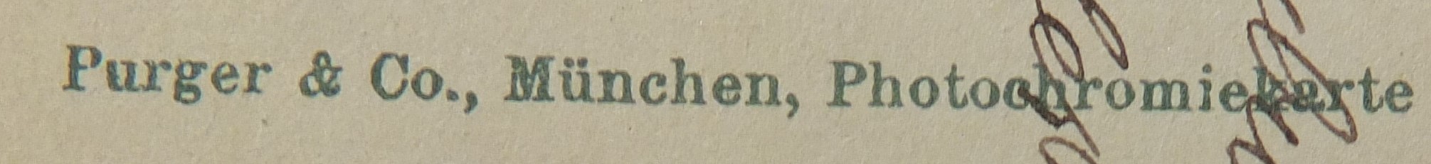 | Firmengeschichte | Der Kaufmann Rudolf Wucherer scheint nur kurz um die Jahrhundertwende in München gemeldet gewesen zu haben. Er war zuerst in der Jahnstraße 30 gemeldet und war 1899/1900 Musterlager und Vertreter für die Vereinigte Dampfbuchbindereien Baumbach GmbH aus Leipzig. Vermutlich hat er zeitgleich auch versucht mit einem Verlag in das florierende Postkartengeschäft einzusteigen und musste sich dem großen Konkurrenzdruck geschlagen geben. |