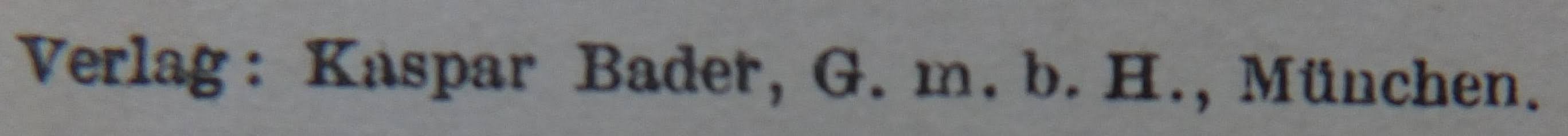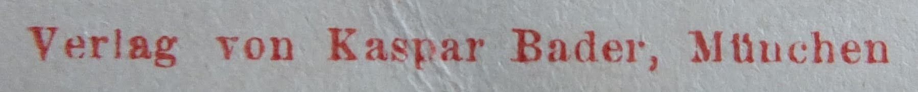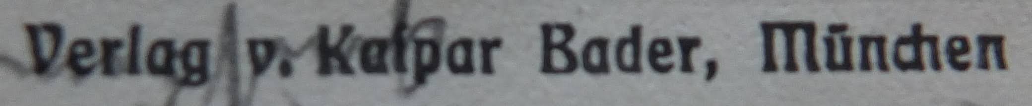 | Schreibweisen und Abkürzungen | Verlag Kaspar Bader ⎖ Kaspar Bader GmbH ⎖ Caspar Bader Nicht zu verwechseln mit dem Namensgleichen Sohn, Sensenschmied und Hotelgastwirt in Garmisch. |
