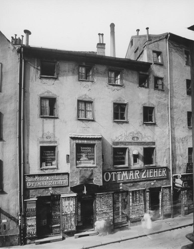 | Firmenstandort im Färbergraben 20 | ![]() Ladenlokal Ottmar Zieher im Haus zum Himmelsschäffler um 1905 |
