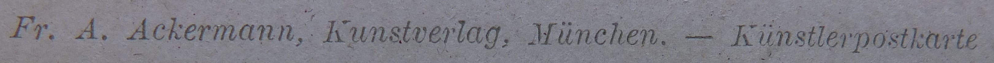 | Schreibweisen und Abkürzungen | Königlich bayerischer Hoflieferant ⎖ A. Ackermanns Nachfolger ⎖ F. A. Ackermann ⎖ Fr. A. Ackermann, Kunstverlag ⎖ F. A. Ackermann’s Kunstverlag Nich zu verwechseln mit: Adolf Ackermann (Weinhändler); Theodor Ackermann (Buchhändler & Antiquar), Adolf Ackermann (Fabrikant) |