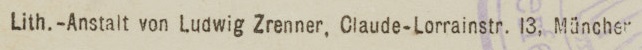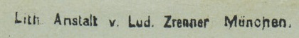 | Schreibweisen und Abkürzungen | Lith. Anst. Ludwig Zrenner ⎖ Lith. Anstalt v. Lud. Zrenner ⎖ Lith.-Anstalt von Ludwig Zrenner ⎖ L. Zrenner ⎖ Lud. Zrenner ⎖ Ludw. Zrenner |