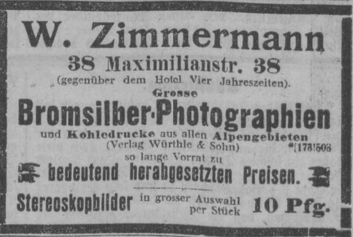 | Quellen | Adreßbuch für München 1906 und 1918 ⎖ Allgemeine Zeitung 04.05.1906, 05.03.1907, 27.03.1907, 13.05.1907 und 19.03.1908 ⎖ BEHRENS, Ralf: Salzburg, der k. u. k. Hofphotograph Eduard Bertel und deren gemeinsame Zeit am Ende der Monarchie, Teil 3, 2022 ⎖ GND Würthle ⎖ GSI Zimmermann ⎖ Mitteilungen der Gesellschaft für Salzburger Landeskunde, 1903, Seite 394–395 ⎖ Münchner Neuste Nachrichten 09.10.1902, 08.06.1905, 17.06.1905, 25.06.1905, 23.12.1905, 16.04.1906, 05.05.1906, 29.05.1906, 23.06.1906, 10.07.1906, 17.10.1906, 03.04.1908, 02.06.1908, 24.08.1908, 04.10.1908, 06.04.1911, 05.01.1922, 05.02.1923, 02.05.1924, 23.12.1926, 12.09.1929 und 11.10.1929 ⎖ Prager Tagblatt, XXXI. Jahrgang, Nr. 308, 07.11.1907, S. 8 ⎖ Salzburg-WIKI ⎖ Stadtarchiv München, ZA-P-0602-43 ⎖ Stadtarchiv Salzburg, AT-STARSBG 4.1.7 ⎖ Wikipedia |
