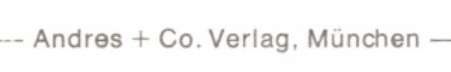 | Schreibweisen und Abkürzungen | ANCO Lux ⎖ Andres + Co Verlag ⎖ Andres + Co. Verlag ⎖ H. A. ⎖ Hans Andres Verlag |