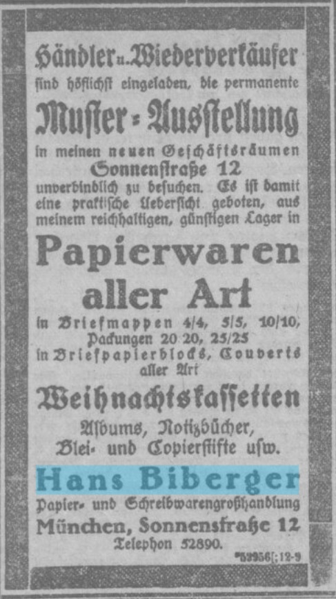 | Quellen | Adreßbuch für München 1933 ⎖ Münchner Abendzeitung, 09.06.1953 |