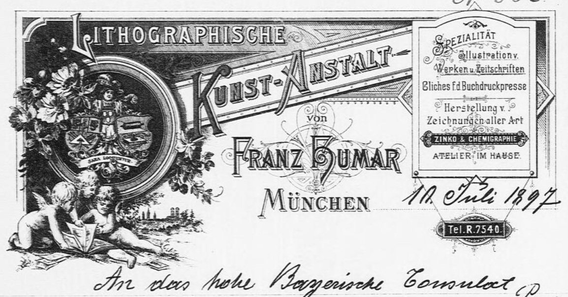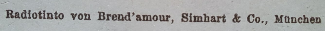 | Firmenstandorte in München | 1884-1885: Amalienstraße 42 (Photochemische Anstalt) 1885–1890: Schwabinger Landstraße 8 (Labor und später auch Kunstverlagsanstalt) 1891–1911: Schwabinger Landstraße 55 (Seit 1891 heißt die Straße Leopoldstraße und der Adresssitz trägt die Hausnummer 102. Die Firma annonciert und korrespondiert aber auch danach noch unter Schwabinger Landstraße). |