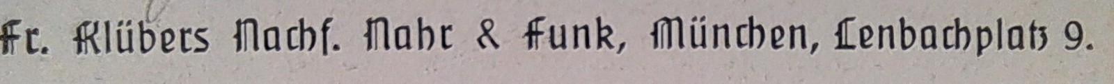 | Quellen | Adreßbuch für München 1886, 1889, 1890, 1897, 1898 und 1905 ⎖ The Printing Times 1889 |