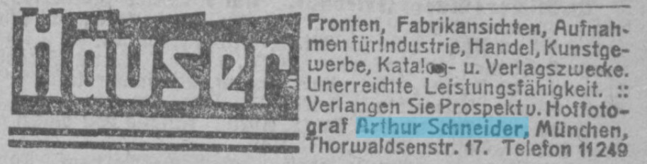 | Quellen | Adressbuch für München 1903, 1908, 1910, 1914, 1915 1925 und 1929 ⎖ Münchner neueste Nachrichten 17.09.1920, 18.06.1921, 26.03.1929 und 09.07.1932 |
