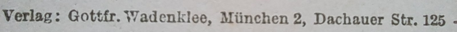 | Firmenstandorte in München | 1881: Jägerstraße 1 (Druckerei) 1881–1898: Münzstraße 6 (Geschäftslokal) 1883: Neuthurmstraße (Geschäftslokal) (?) 1883: Münzstraße 3 1883–mind. 1890: Münzstraße 8 1898 (?): Gabelsberger Straße 34 1898: Münzstraße 6 1904: Thalkirchnerstraße 7¾ 1928: Humboldstraße 8 IV 1933: Claude-Lorrainstraße 13 |