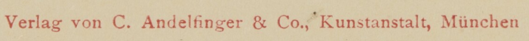 | Firmengeschichte | Andelfinger erhält einen Teil seiner Ausbildung im Stuttgarter Cotta-Verlag bei Adolf Kröner. Spätestens 1892: Weschsel nach München in den Verlag des Illustrierten Reise-Albums, Reiseonkels und Reiseblätter als Buchhandlungsbuchhalter. Zu dieser Zeit wohnt Karl Andelfinger in der Adelgundelstraße 5b 0. Weitere Stationen seiner Wanderjahre: Zürich und Regensburg. 07.01.1899: Karl Andelfinger und H. Pühler legen die beiden gemeinsam geführten Firmen Verlag des Illustrierten Reise-Album und Karl Andelfinger Verlagsbuchhandlung zusammen. Der Name der Kollektivfirma lautet nun C. Andelfinger & Co., Kunst-und Verlagsanstalt. Außerdem Eintritt Andelfingers in den Münchner Buchhändler-Verein. 10.02.1899: Die neu fusionierte Firma C. Andelfinger & Cie wirbt per Annonce um Skizzeneinsendung von Künstlern für Ansichtspostkarten anlässlich der Allgemeinen Deutschen Sportausstellung. 1899: Die Firma Andelfinger & Cie. wird mit vier goldenen Medaillen für ihre Druckerzeugnisse ausgezeichnet. 1900: Andelfinger wird mit einer fünften goldene Medaille ausgezeichnet. Bei der Ansichtskartenausstellung in der Münchner Schrannenhalle im August erreicht Andelfinger einen ersten Platz. Neben einer Urkunde erhält die Firma eine Goldmedaille. Diese stammt vom Betrieb Oskar Consée ↩, deren Inhaber auch Teil der Jury ist. 1901: Produktion und Verkauf sogenannter Blitzartikel. Ordner und Mappen als Ordnungssystem für Schriftstücke. 1902: Andelfinger vertreibt neben Ansichtskarten auch die älteren Ansichtsalben, in denen gleich bis zu 28 Ansichten Münchens zu finden sind. Im selben Jahr erscheint auch das Reisealbum mit Ansichten anderer Städte bereits im siebten Jahrgang. 1903: Andelfinger ist offizieller Vertreter für Schreibmaschinen der Firma Ideal in Südbayern. 1906: Die Firma Andelfinger hatte für das Jahr 1903 das kommissionsweise Verlagsrecht für die Münchner Künstler-Fächer von der Pensionsanstalt deutscher Journalisten erhalten. Dieser war die Firma Andelfinger seit 1904 328,95 Mark schuldig, die sie nun durch gerichtlichen Beschluss begleichen musste. 05.02.1908: Ins Handelsregister wird die Künstler-Karten-Herstellungs- und Vertriebsgesellschaft mit Karl Andelfinger als Geschäftsführer eingetragen. Gegenstanddes Unternehmens ist die Herstellung und der Vertrieb von Künstler-Postkarten und ähnlichen Artikeln. Stammkapital: 30.000 RM. 1909 (?): Gründung des Süddeutschen Schutzverbandes für die Postkarten-Industrie mit Sitz direkt über dem Verlag, Lindwurmstraße 24 IV. 1912: Die Firma Andelfinger Andelfinger besorgt für Kunden auf Wunsch die Aufgabe von Postkarten per Luftpost. Außerdem vertreibt sie allegorische Ganzsachen („allegorische Karten mit eingeprägter Marke“), Vierfarben-Künstlerkarten sowie die von der Bruckmann-AG produzierten Ansichtskarten zur Bayerischen Gewerbeschau. Seit diesem Jahr bewirbt die Firma auch den Verkauf von Schreibmaschinen der Marke Erika. 1914: Die Firma Andelfinger übernimmt die Auslieferung der Wohltätigkeits-Postkarten des Roten Kreuzes. Im selben Jahr verausgabt sie Siegelmarken mit Münchner Ansichten nach Aquarellen von Richard Wagner. 1916: Der Verlag vertreibt außer Ansichtskarten auch Reklamedrucksachen, Plakate, Schreib- und Rechenmaschinen. 1930: Zusammenlegung des Verlags mit dem Verlag des Illustr. Reise-Albums. Damit einhergehend die Umbenennung in Kunstverlag Andelfinger. Der bisherige Mitinhaber Hermann Pühler übernimmt die Geschäftsführung. Spätestens 1947: Als Inhaber tritt Hermann Strauß in Erscheinung. |
